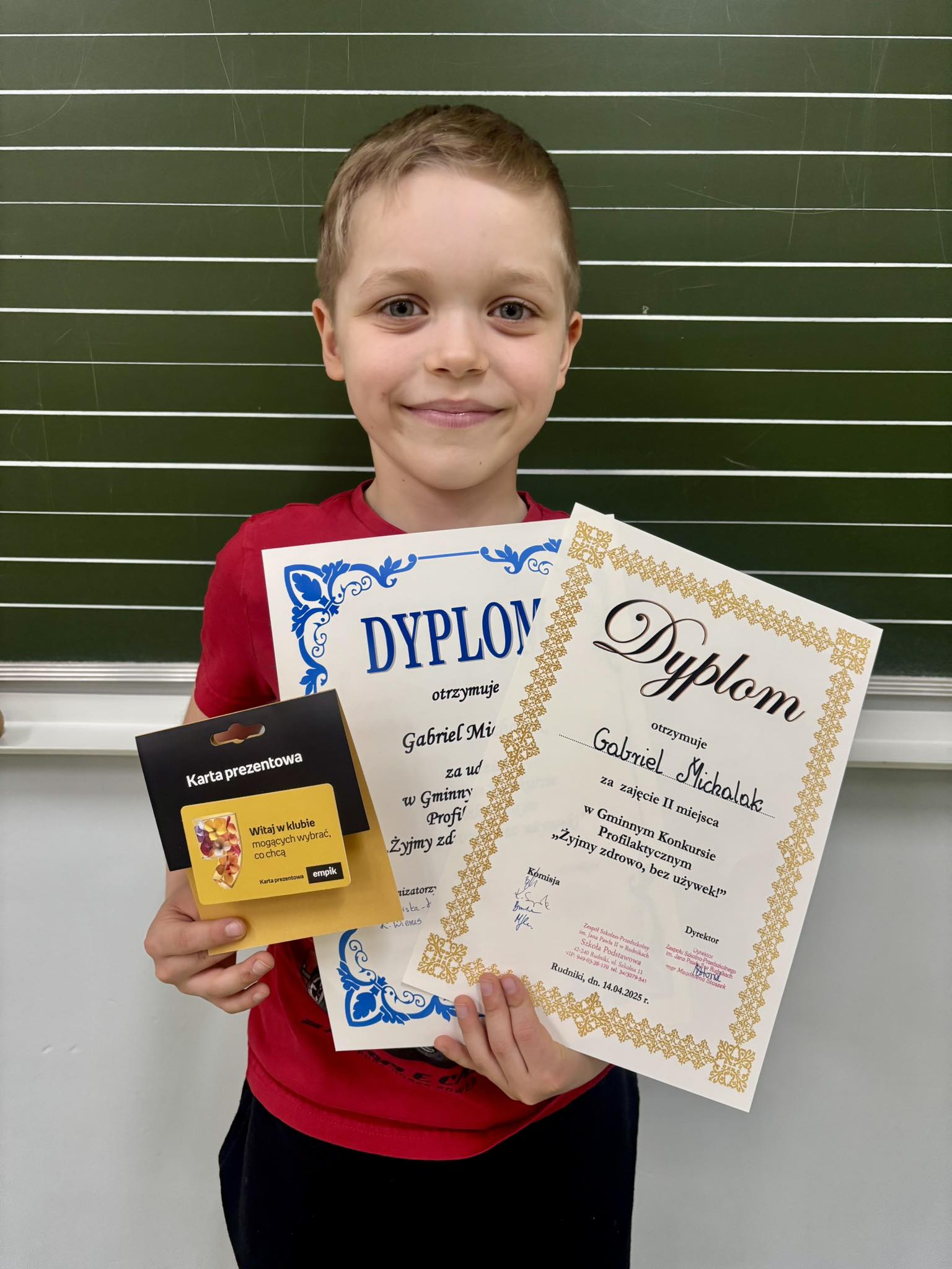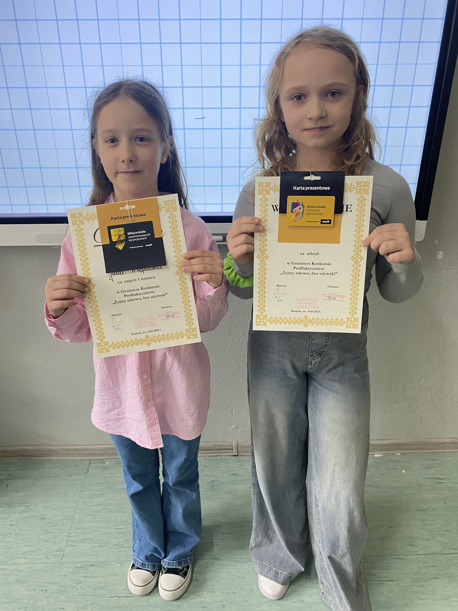Miło nam poinformować, że w Gminnym Konkursie Profilaktycznym ,,Żyjmy zdrowo, bez używek” w kategorii klas I – III nagrodzeni zostali :