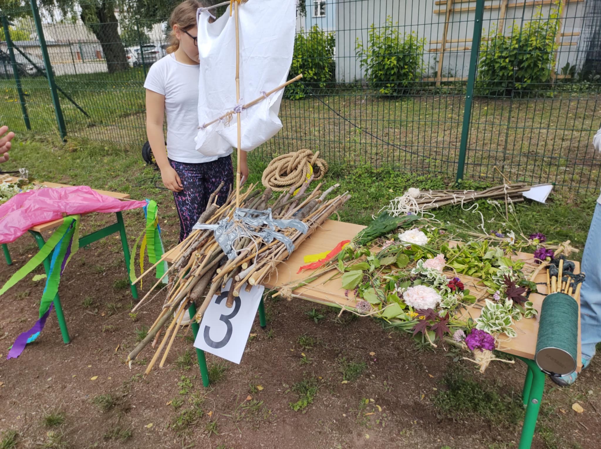 Naturalny gobelin – każda klasa tworzyła własny gobelin na samodzielnie wykonanej ramce z patyków, przeplatając ją trawą, kwiatami i innymi materiałami znalezionymi w naturze.