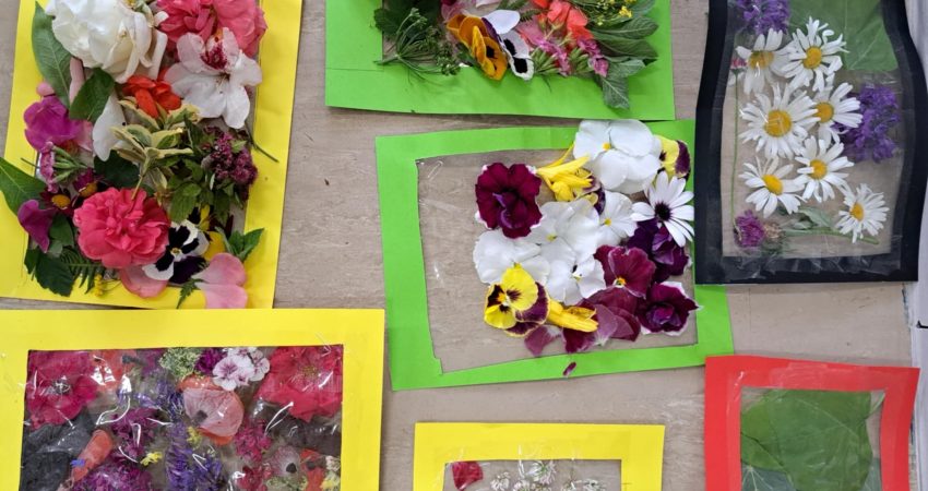 Z liści, traw i kwiatów powstawały piękne naturalne kompozycje, które uczniowie umieszczali w papierowych ramkach.