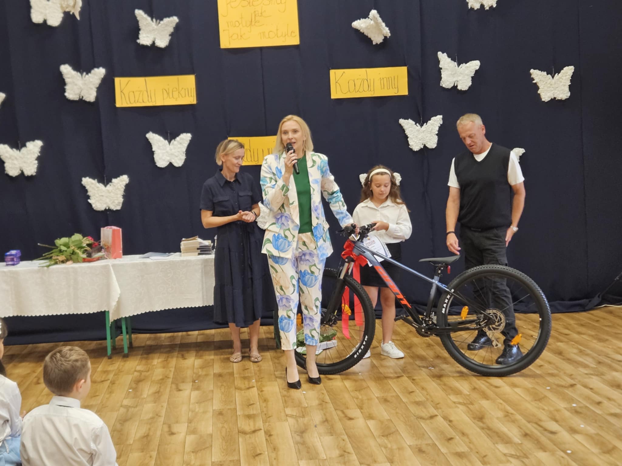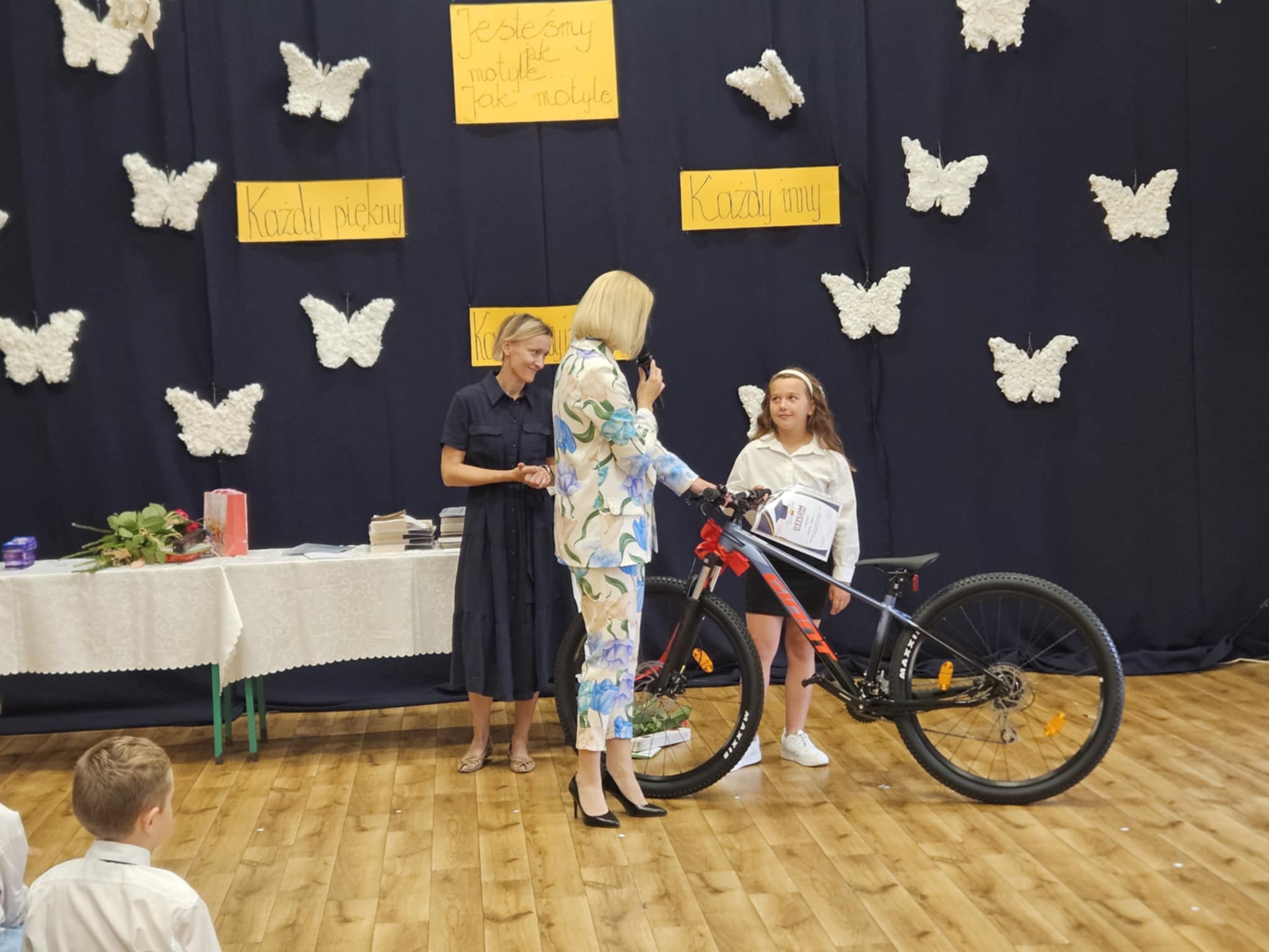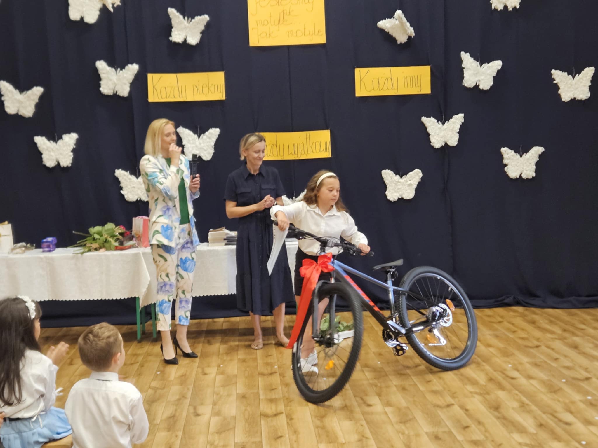 Główną nagrodę-rower, wylosowaną po zakończeniu „Tygodnia rowerowego”, otrzymała uczennica klasy V, Natalia Resel.
