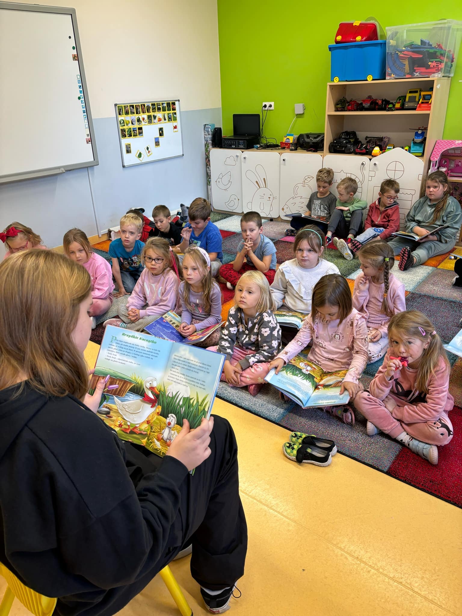 Październik jest Międzynarodowym Miesiącem Bibliotek. W związku z tym Uczniowie zaangażowani w prace SKW zrealizowali projekt czytelniczy. Przez kilka dni odwiedzali najmłodszych kolegów, w grupach przedszkolnych, aby prezentować im najpiękniejsze baśnie J. H. Andersena. Dzieci nie tylko wysłuchały baśni i bajek, ale też podziwiały pięknie zdobione, kolorowe lektury, bogato ilustrowane.