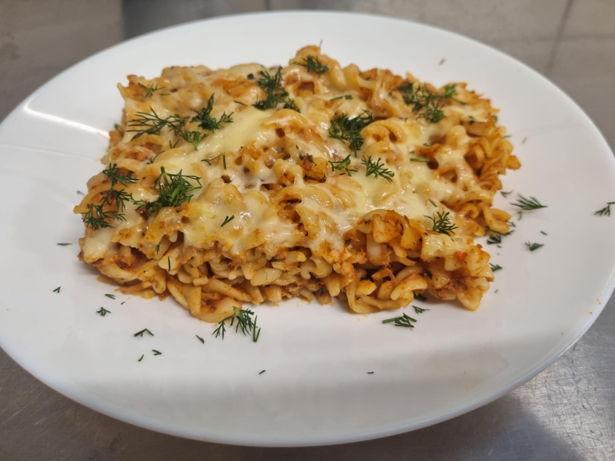 Zapiekanka ptysiowa z barszczykiem czerwonym