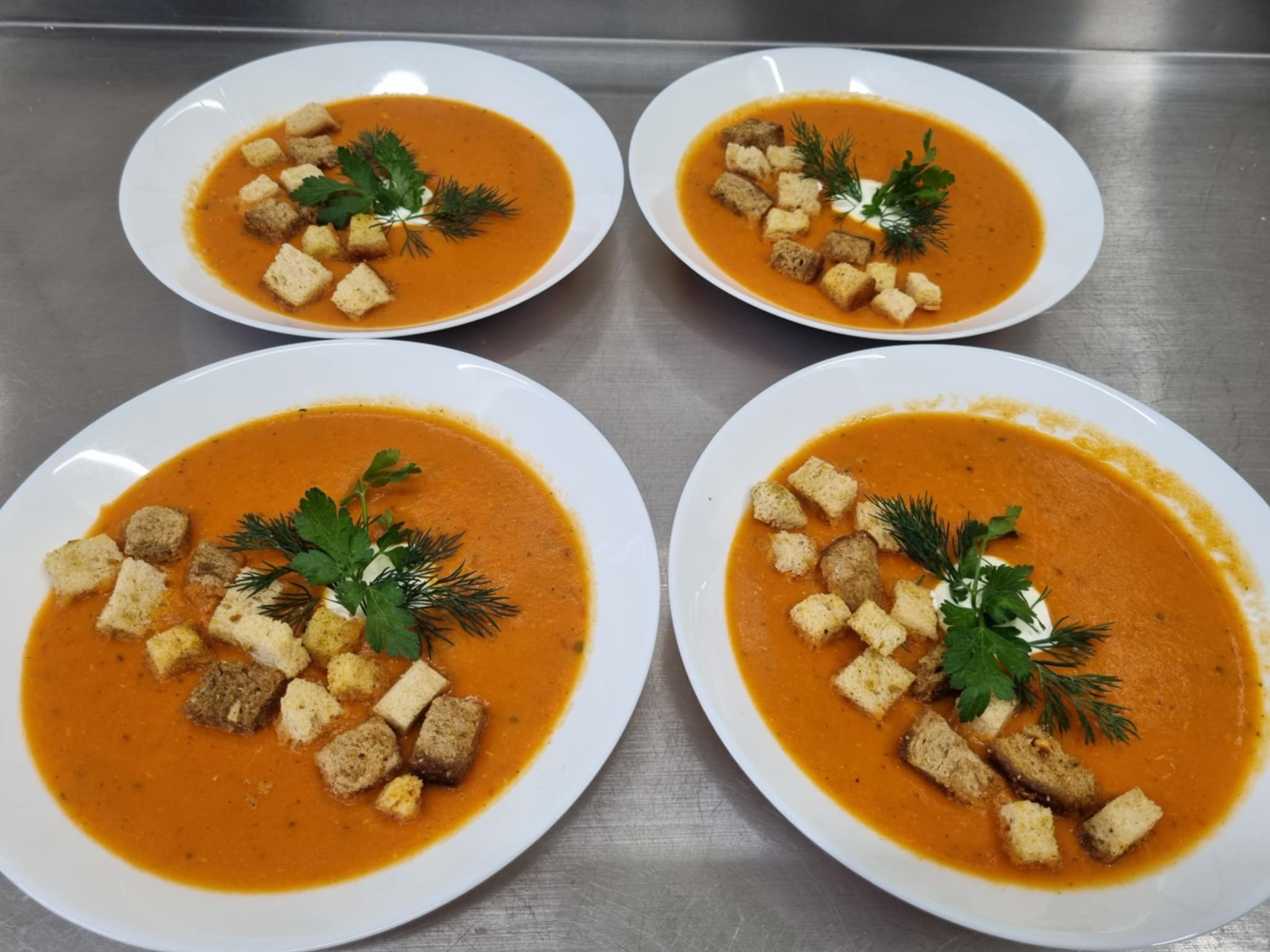 prozdrowotnego likopenu, a także witaminy A i potasu; cebula jest bogata w witaminę C, chrom i blonnik, a ponadto pomaga obniżyć ciśnienie krwi i poziom cholesterolu.